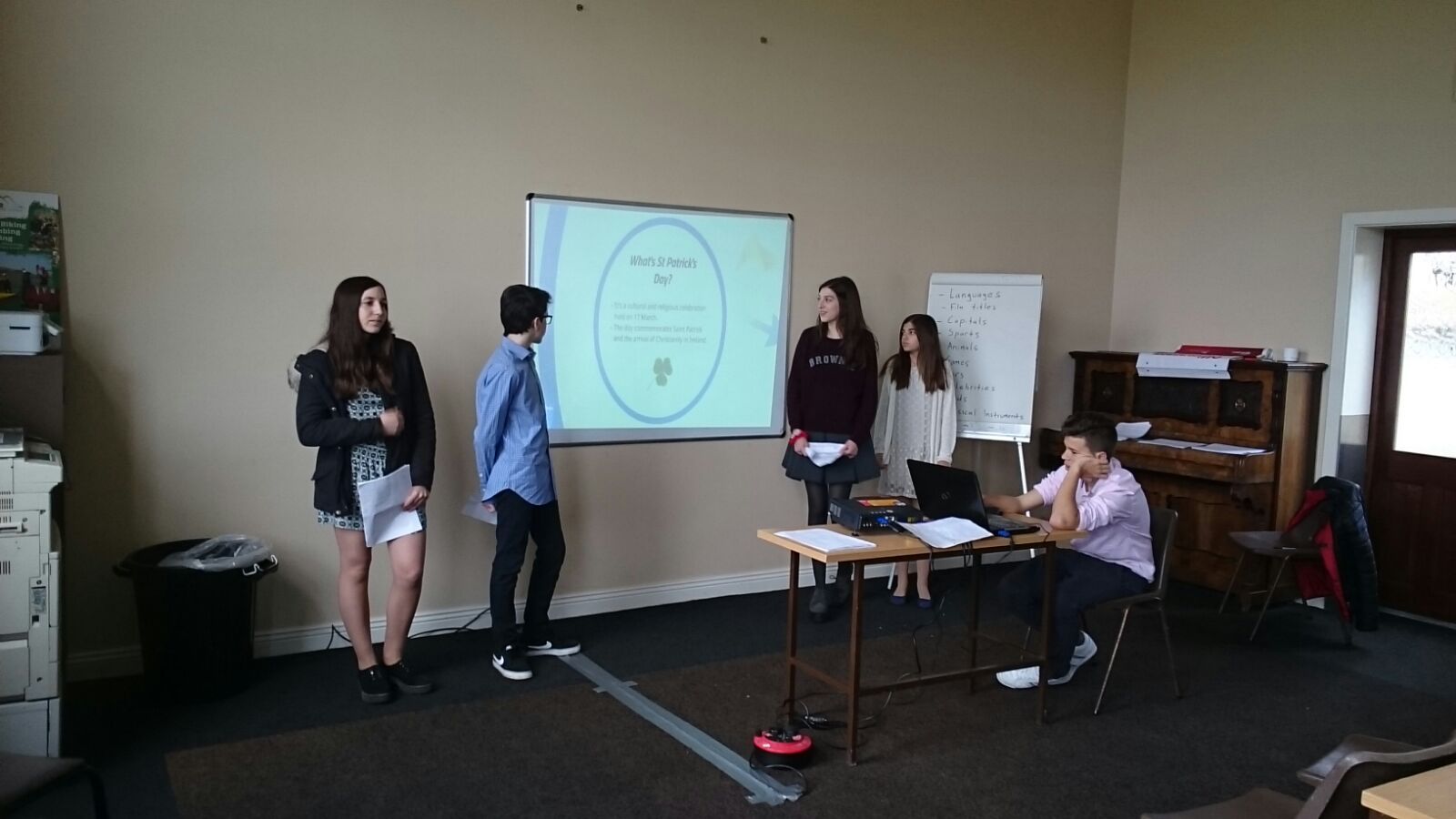 Al llarg de 8 dies, 27 alumnes acompanyats per dos professors responsables del programa BSD han pogut participar activament de la immersió lingüística en un centre educatiu d’Irlanda. Una de les activitats més importants que han portat a terme ha estat la presentació d’un projecte amb anglès que els alumnes havien preparat anteriorment al centre i que aquesta setmana l’han pogut presentar davant d’altres professors de parla anglesa.