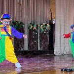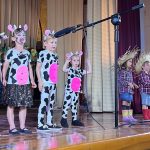A Infantil, l’alumnat de P3 va portar a terme l’obra anomenada LA GRANJA DE L’ÀVIA PEPA. Es tracta d’una iaieta que vivia en una granja i cada matí despertava els animalets i els preparava l’esmorzar. Un dia l’àvia no es desperta… tots els animals intenten despertar-la però no hi ha manera. Fins que un dia arriba un mosquit i la desperta! Pel que fa a l’alumnat de P4 i P5, han dut a terme l’obra anomenada FLORINDA, LA VACA PALLASSA. Aquesta era una vaca somiadora que volia ser pallassa i no volia viure a la granja amb la resta de vaques. Un dia el circ arriba a la ciutat i marxa per passar a ser pallassa per sempre més.