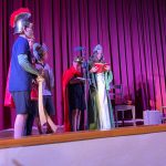 A 5è han representat THE BRIDGE, que explica la història que un pagès i la seva família troben la seva vida tranquil·la pertorbada per representants de diferents ministeris del govern que volen millorar una zona rural construint un pont. El sentit comú vola per la finestra a mesura que els documents oficials de la política es segueixen servilment per proporcionar al pagès un pont nou i totalment innecessari. L’alumnat de 6è ha representat GEORGINA AND THE DRAGON: Amb el regne aterrit per un drac que escup foc, el rei emet desesperadament una crida d’ajuda. Com que no hi ha cap, excepte el menys que impressionant príncep Jodrel, correspon a Georgina assumir el repte. Malauradament, Georgina és la cuinera reial acabada de nomenar i no és gaire millor que el desafortunat príncep. Tanmateix, amb una recompensa de mil peces d’or que s’ofereixen, la parella improbable almenys ha de fer un esforç.
