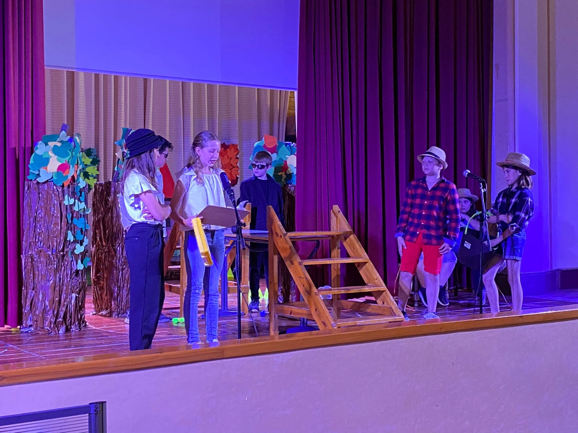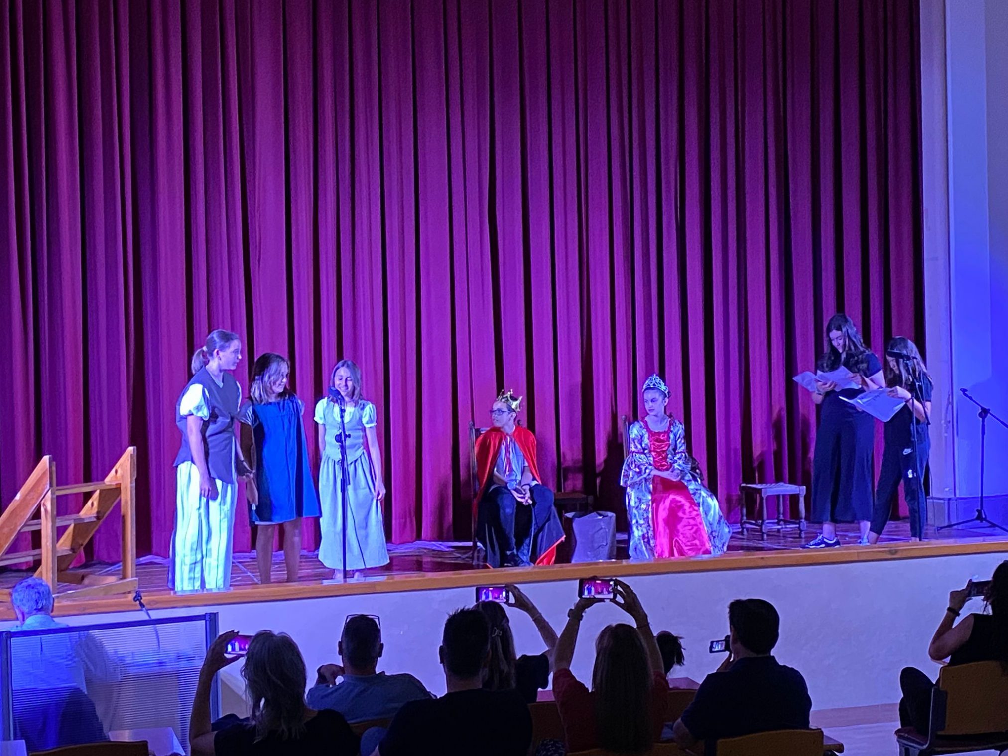 A Cicle Superior, l’alumnat de 5è i 6è han estat preparant les respectives obres des del mes de gener, primerament fent una comprensió lectora en anglès sobre el guió i la trama, després es van assignar ja els personatges i seguidament ja es va començar amb la memorització i interpretació de cada paper. El següent pas va ser anar ja al saló d’actes per fer uns assajos més propers a la representació final. Calia coordinar les intervencions de cada personatges amb la música, el seu llenguatge corporal amb allò que diuen i la seva ubicació a l’escenari. Finalment, les dues darreres setmanes de maig, juntament amb la 1a de juny, cada grup ha representat cada obra a les respectives famílies.